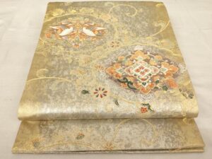 平和屋着物 織悦 全通柄 本袋帯 正絹 更紗花文 金糸